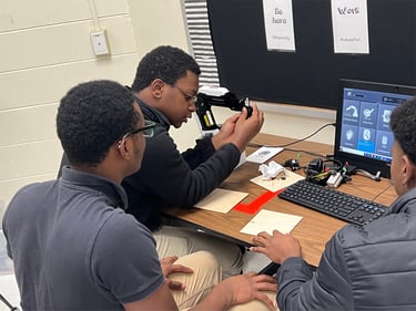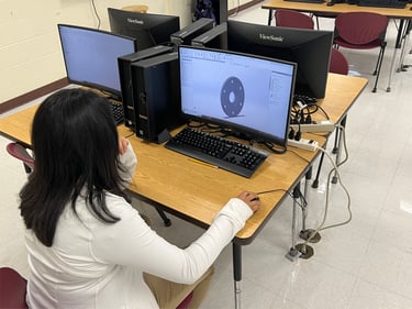 In a STEM class setting, students learn the process of taking a project from paper to 3-D printing, where it is then sent to the Welding class for fabrication. This allows students to gain manufacturing knowledge and understand the design process from paper to a finished product.