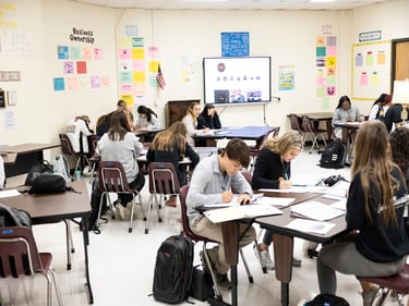 The program also teaches students how to create content and market it (sales) to get it into the consumer's hands. For example, the AV class teaches videoing, producing, and editing content for social media and sales ads. In addition, students in the journalism class are learning how to create engaging written content. And finally, the marketing students learn how to use all of these forms of media to drive sales and increase interest.